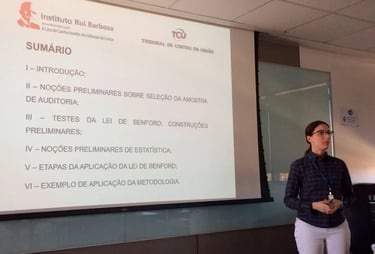 Application of Benford’s Law in Public Works Auditing — lecture delivered at the Rui Barbosa Institute (IRB) for all Brazilian Courts of Accounts, as part of the IRB Scientific Journeys program. The session highlighted innovative data-driven methods for detecting overpricing in large-scale infrastructure projects.